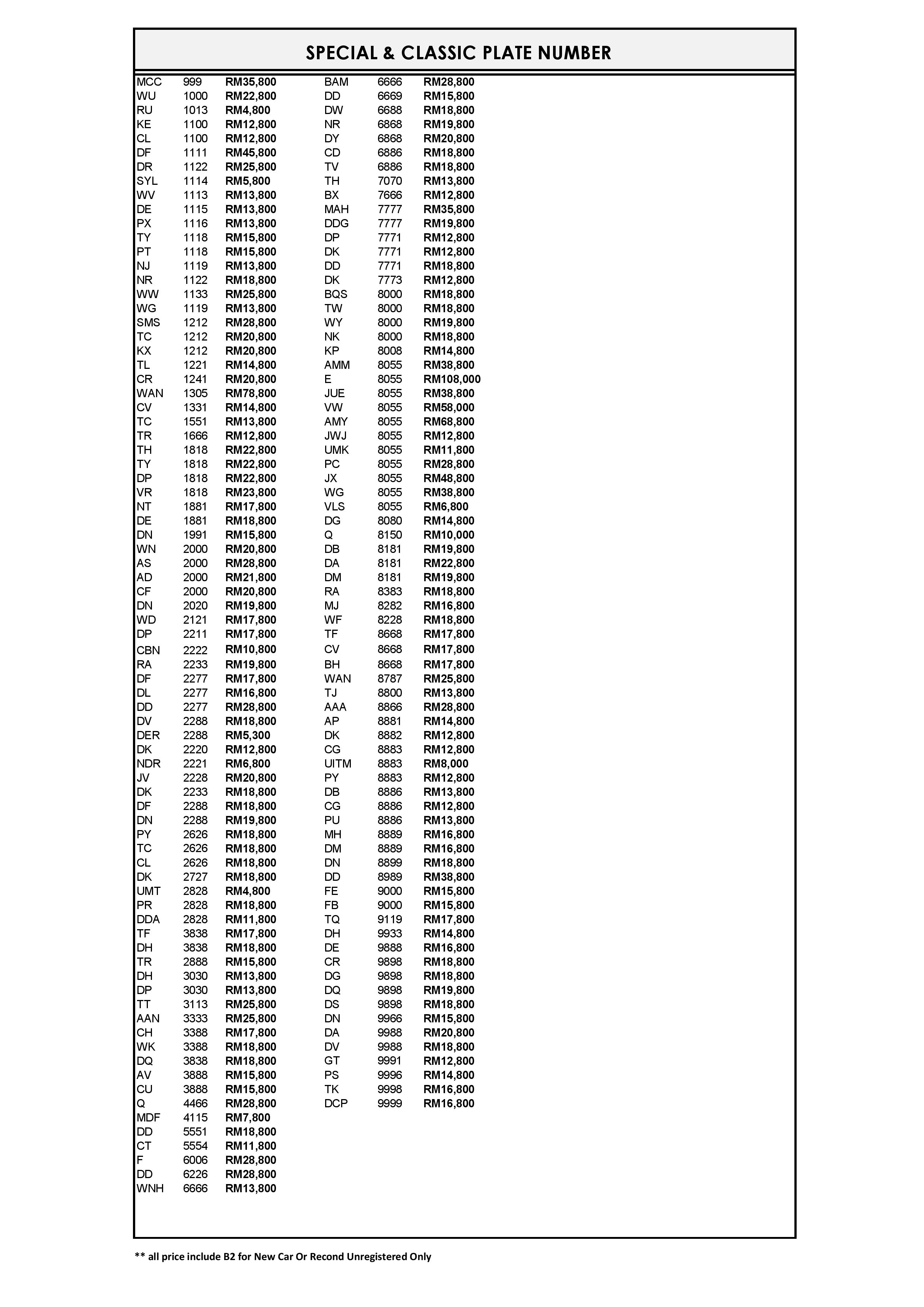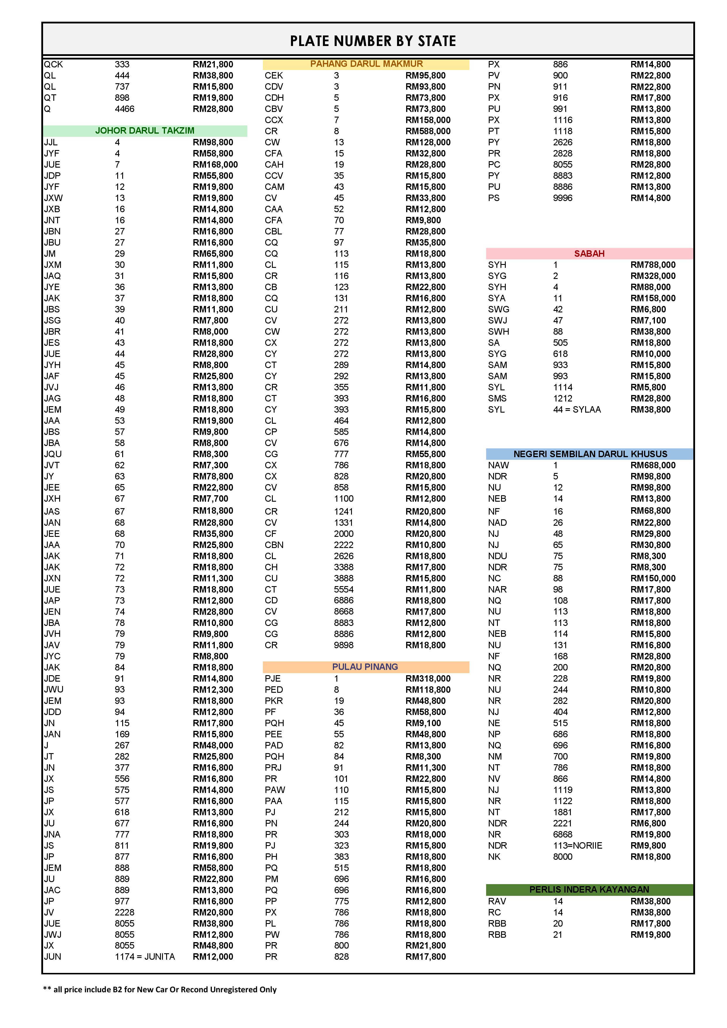 Copyright 2012 © Malaysia Plate Number Place @ www.platemaster.com.my For Best Viewer Use ![]() |